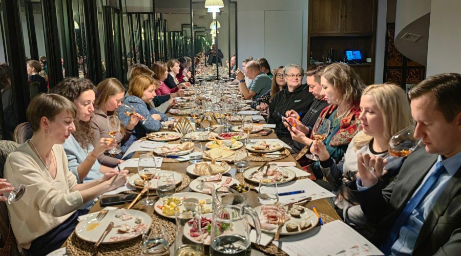 29 ноября в московском ресторане «12 бокалов» состоялась лабораторная работа «Вино и сало». Гостям вечера были представлены на дегустацию образцы вкуснейшего сала и прекрасное вино. Это уже второе подобное мероприятие. Первое было проведено в начале года, а второе – в его завершении.