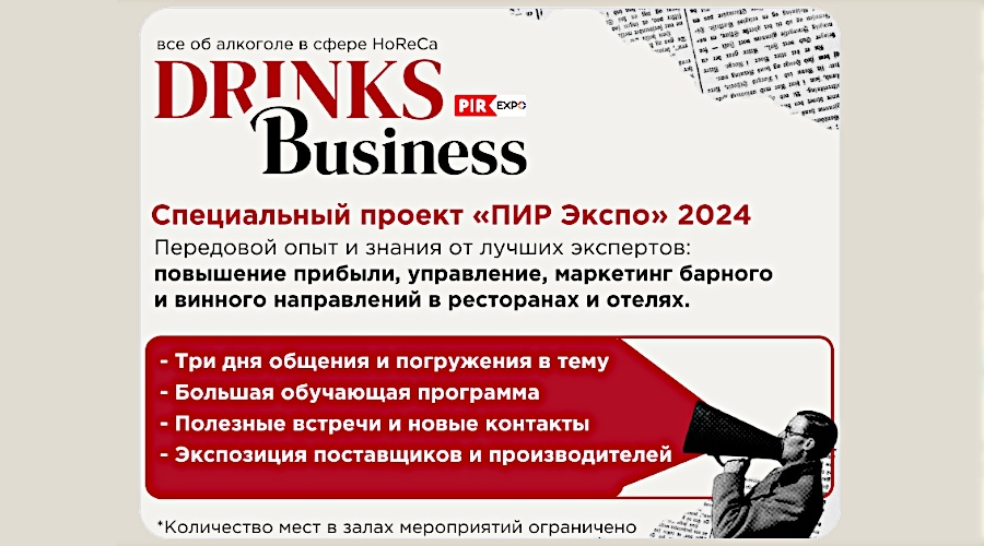 С 21 по 24 октября в Москве пройдет 27-я международная выставка индустрии гостеприимства «ПИР Экспо» 2024. В этом году алкоголю будет посвящена отдельная секция, которая включит в себя экспозицию производителей и поставщиков, а также большую деловую программу. «Drinks Business» — это последние тренды рынка алкоголя в сфере HoReCa. Программа мероприятия здесь