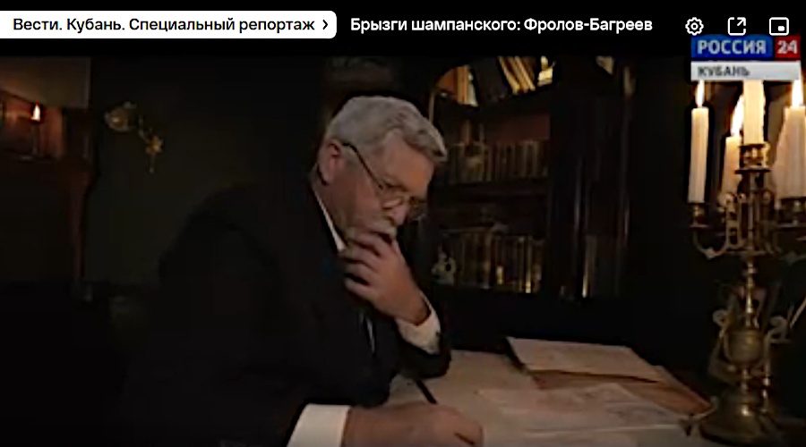 Вести Кубань выпустили получасовой фильм про отца «Советского шампанского» Антона Фролова-Багреева. Назвали спецрепортажем, но конечно же, это что-то вроде телевизионного эссе. С художественными, так сказать, вставками. Очень много исторической фото- и кинохроники. И подробные интервью современников в Абрау-Дюрсо и на кафедре виноделия Кубанского технологического университета.