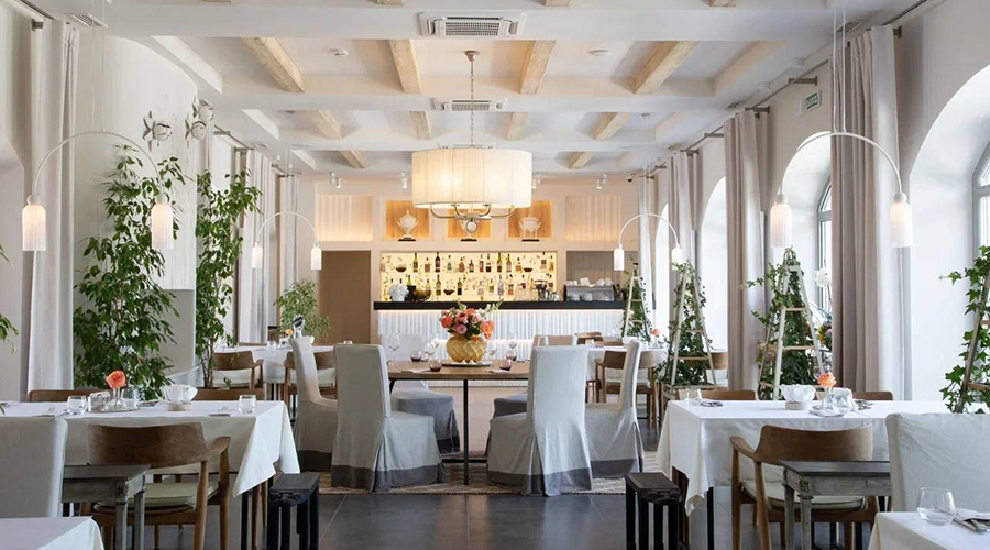 1. Ресторан Пастораль. 112 гостей внутри ресторана и до 52 — на летней террасе во внутреннем дворике. Открыт в 2014 году