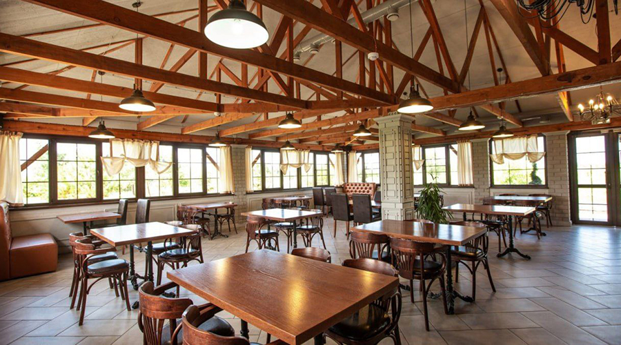 1. Ресторан Вилла София. 70 мест. Плюс крытая беседка у озера на 10 гостей. Банкетный зал до 100 человек.