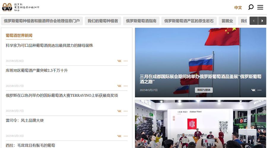 Ассоциация виноградарей и виноделов анонсировала вариант своего сайта на китайском языке. Вот его адрес: https://cn.rvwa.ru/.
