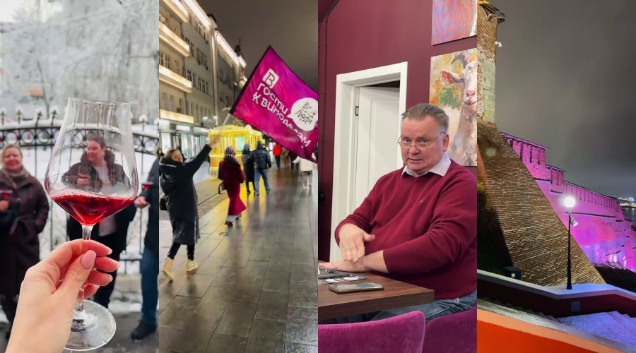 Но давайте по порядку. Первой точкой нашего знакомства с Нижним стал бар «Маргулец». Конечно же, а как иначе? Куда идти любителям российского вина, если не в заведение, целиком посвящённое нашему? Здесь нас встретили магнумом Империала и Магнатумом. Мы познакомили публику с удивительной хозяйкой бара — Еленой Маргулец. Если и есть в стране человек, умеющий делать российское вино модным, так это она.