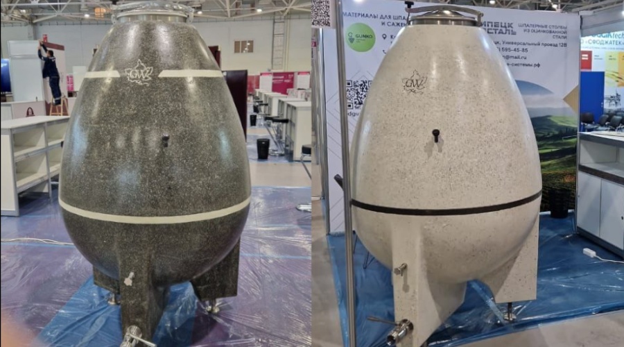 Но и это ещё не всё новости. Официальными представителями кропоткинской компании стали главный винодел Gunko Winery Сергей Коротков и его коллега шампанист Сергей Иващенко. Яйца из гранита и мрамора скоро уедут на винодельню Гунько. По словам Короткова, эти образцы они произвели для себя и планируют ферментировать и выдерживать игристые, тихие белые и красные вина. Но прежде, чем необычные ёмкости уедут в Нижнебаканскую, они будут экспонироваться на выставке Винорус (23-25 апреля).