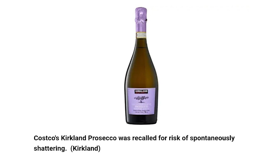 940 400 бутылок просекко отзывают из торговой сети Costco (США). Причина — самопроизвольные взрывы бутылок. Всего таких случаев было зафиксировано десять, есть даже пострадавшие. Комиссия по защите потребителей инициировала отзыв почти миллиона бутылок Kirkland Signature Valdobbiadene Prosecco Superiore DOCG из магазинов 12 штатов. Стоимость просекко — $8. Отзывы коснулись только одного вина — в зелёной бутылке и с фиолетовый этикеткой.